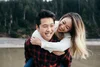 I’m so happy I met Frances and Charles! They fell in love in Boston and then moved to Oregon to start an exciting new adventure together. It was so adorable when Charles was telling me about the proposal and his decision to ditch his original plan at the spur of a moment. He got so excited, when he saw a double rainbow appear outside of their new apartment in Portland, that he woke Frances up to share the view and popped the question right then and there. Scroll through to see two amazing photoshoots; one more formal with the beautiful PNW landscape and a more casual session on the along Oregon coast. We had so much fun capturing their love, their adorable dog, Bodi, Frances’s piggyback on Charles, and a pop of champagne to top off their engagement photoshoot.